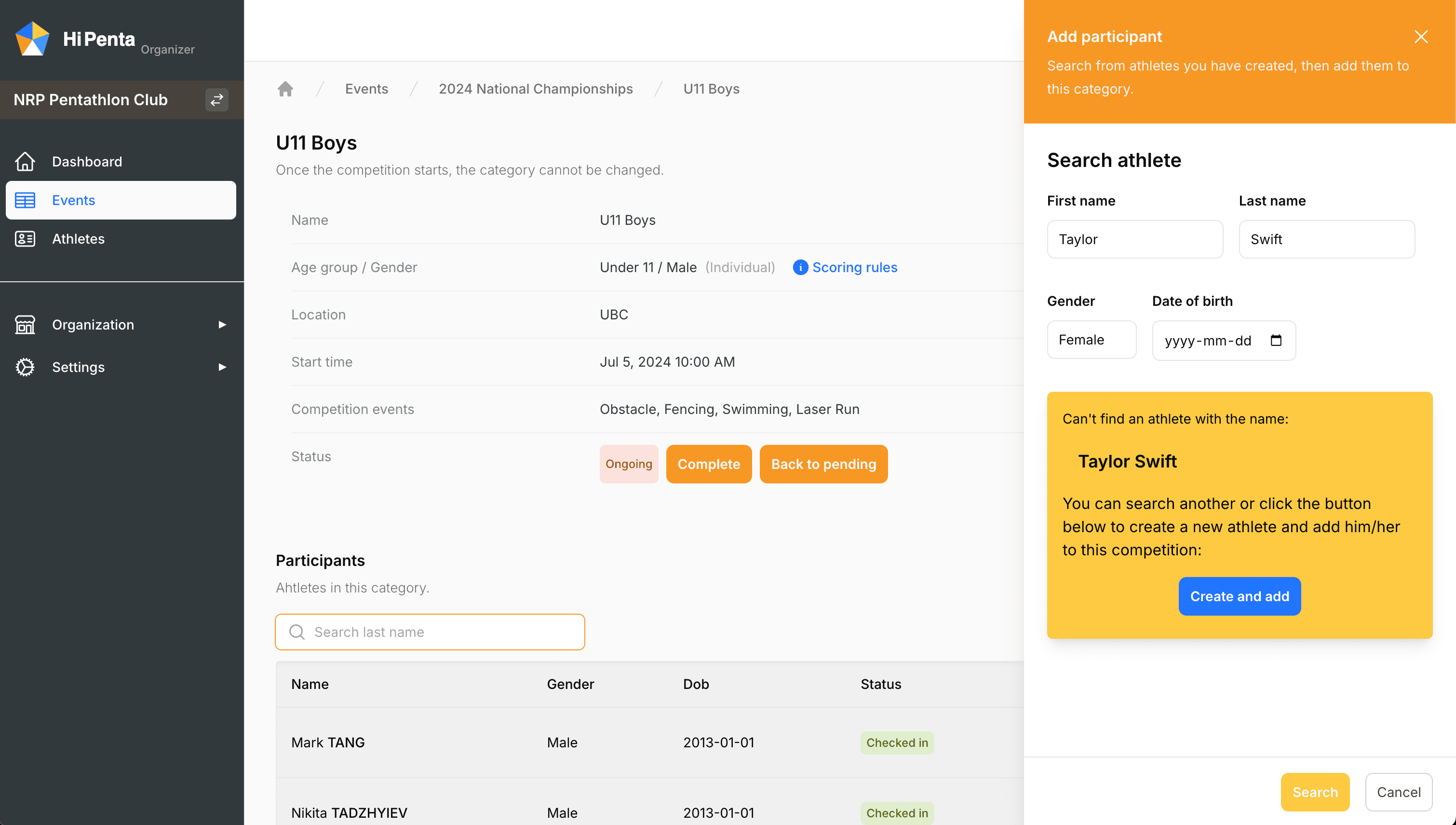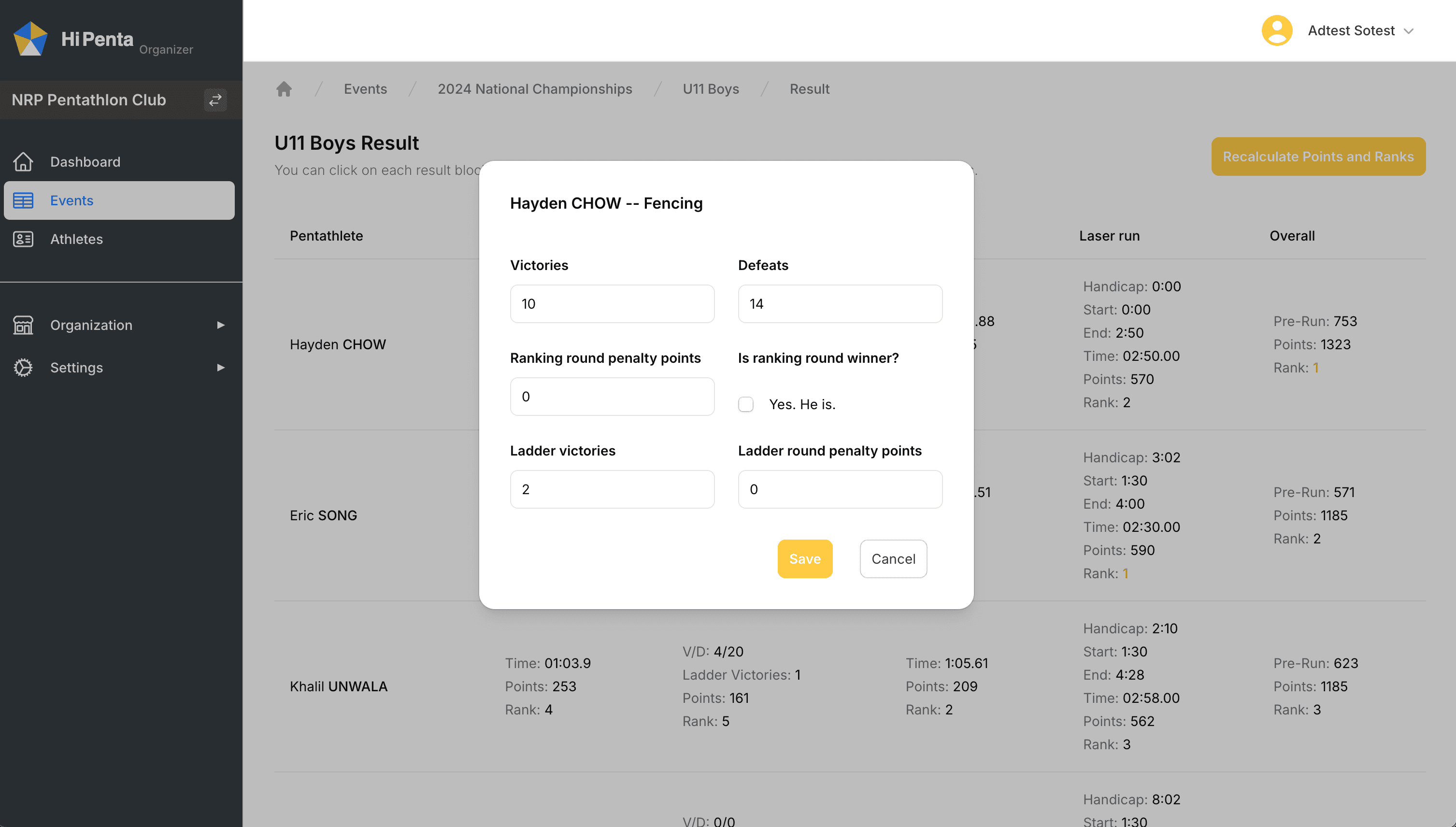 The HiPenta Modern Pentathlon Scoring System is designed for Modern Pentathlon clubs, associations, and other Modern Pentathlon (or Biathlon / Triathlon) event organizers to facilitate scoring and athlete ranking in their competitions.